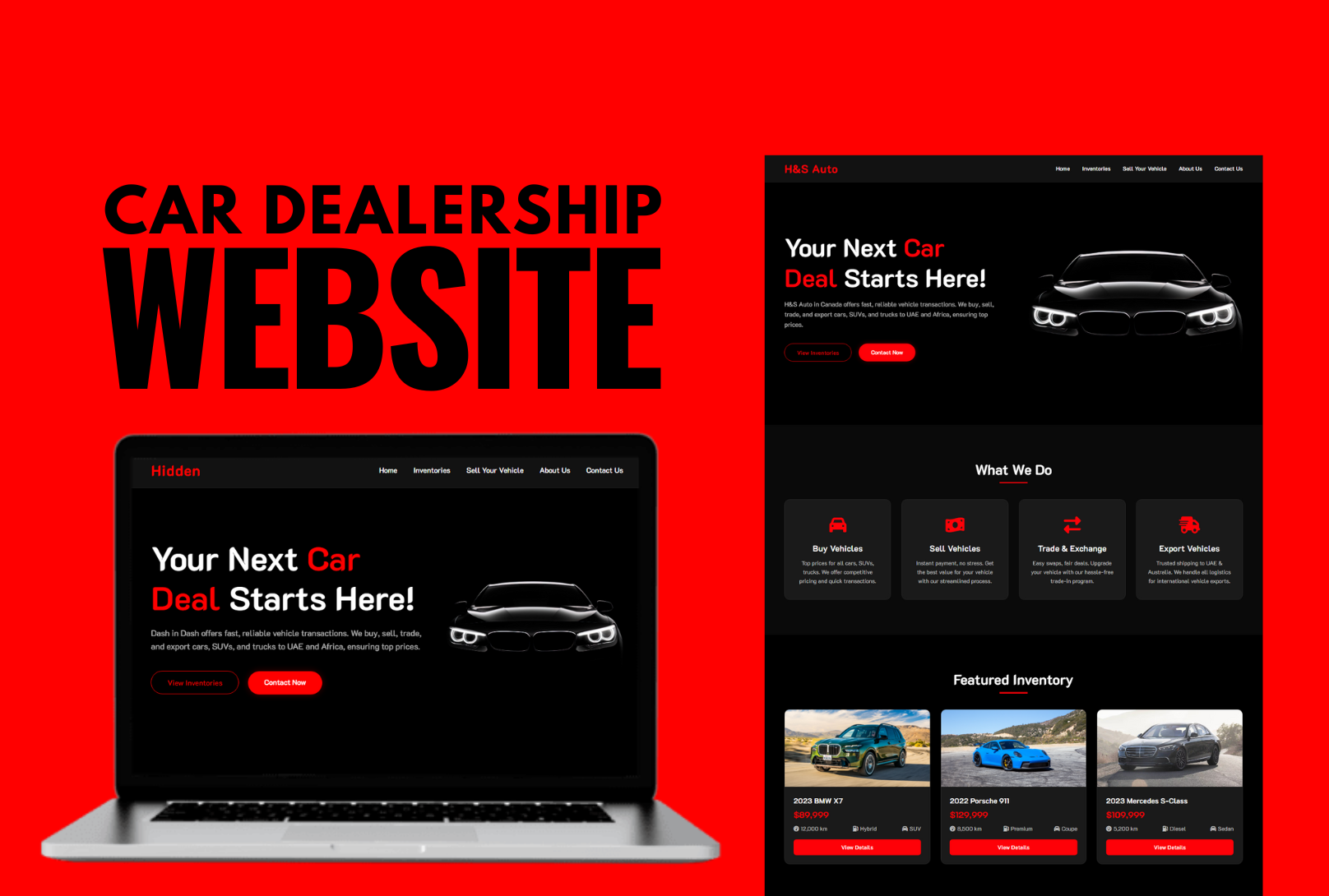 Complete car dealership website with online car listings, inventory management, and premium cinematic design.
