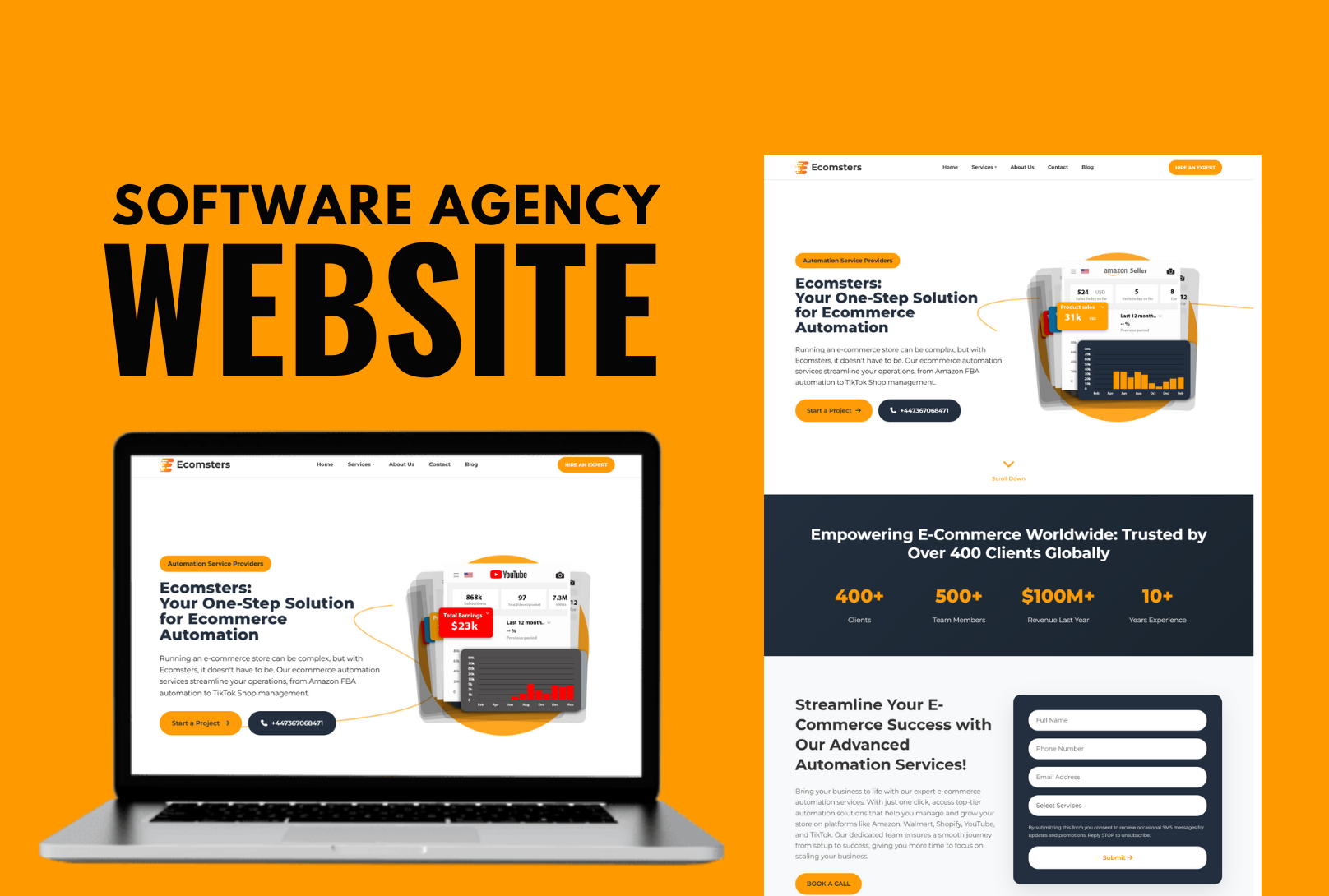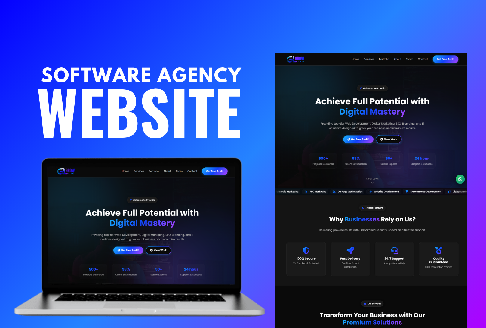 Complete software company website with dedicated service pages, all built with smooth high level animations.